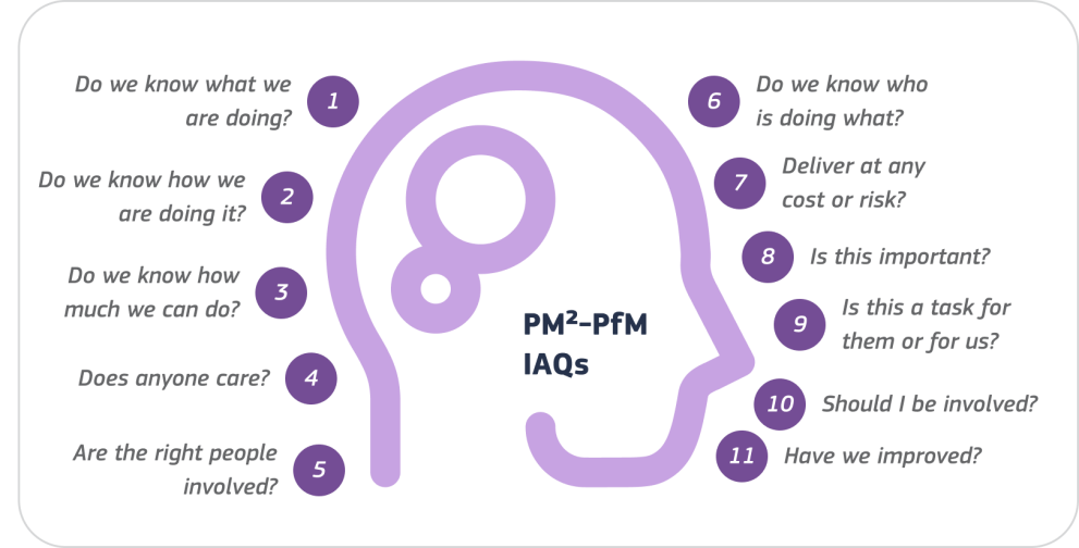 To remain aligned with the PM²-PfM Mindsets, portfolio managers and teams should also reflect on the essential Infrequently Asked Questions (IAQs).